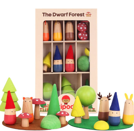 Embrace the imaginary magical land with the KIPOD Dwarf Forest, a perfectly crafted wooden toy set designed to enlighten playtime and make it enchanting.