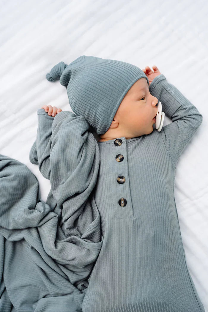 The easiest tie-bottom outfit for day or night. Made for hassle free diaper changes and gentle dressing, designed with a button-down front and tie bottom for simple closure (no more snaps at 2am!). Fold over wrist cuffs are the most thoughtful finishing touch.