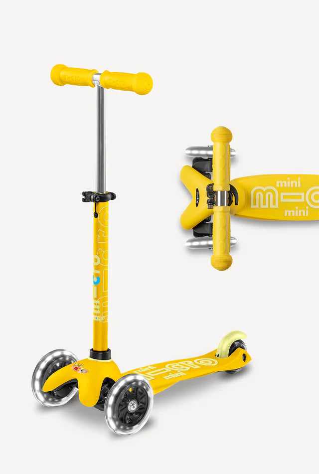 The Mini Deluxe LED comes in a variety of fresh color combos and offers a wide range of features that make it perfect for preschoolers: a low-to-the-ground deck for easy scooting, ultra-comfortable hand grips for tiny hands, stable 3-wheel design with lean-to-steer mechanism, silicone-injected deck to prevent slipping, and a height-adjustable T-bar.