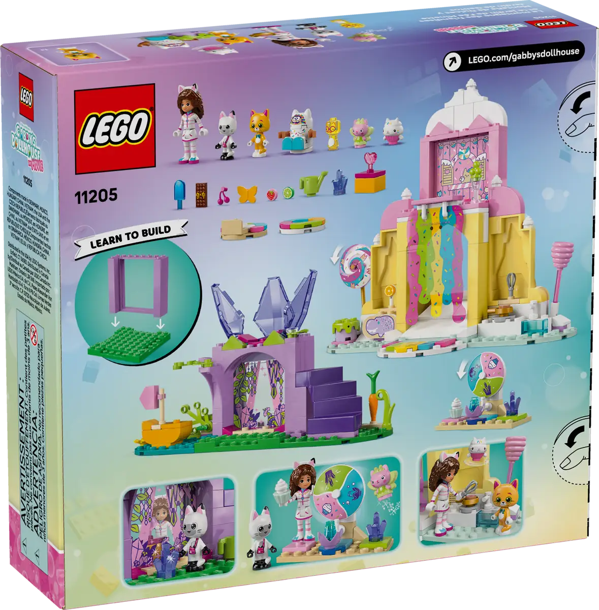 The creative playset features 2 movie locations and many LEGO figures, including Gabby, Pandy Paws and Kitty Fairy. Sweet Treat Mountain immerses little ones into a magical world of sugary treats. The characters can slide through the colorful waterfall riding on donut floats. Kitty Garden is a fantastical retreat where Kitty Fairy sits on her crystal flower throne and gems are hidden for kids to find. Colorful pictorial instructions, a large Starter Brick and separate bags with 1 model per bag make the creative experience fast and fun for little builders.