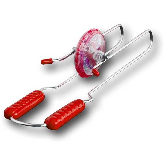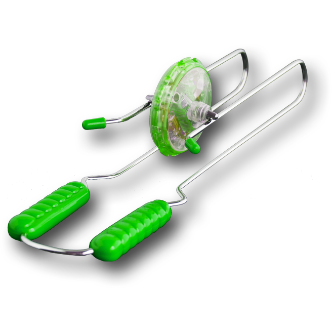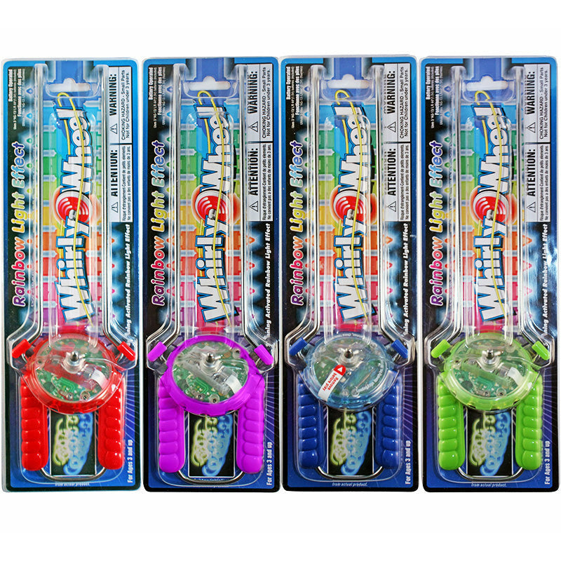 Experience centrifugal forces first-hand! This classic magnetic wheel toy is of the highest quality in magnetic wheels. Tipping the rails up and down makes the wheel spin, and when it spins fast enough the rainbow light effect is activated. Then drop the wheel onto the floor and watch the top spin like crazy!